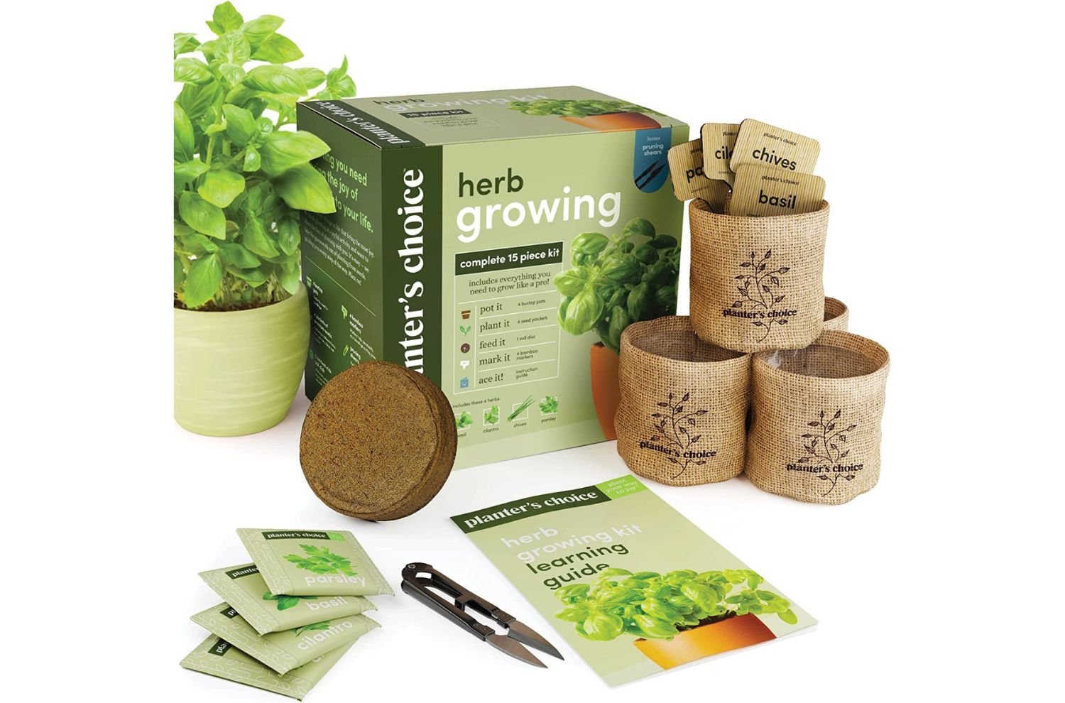 The Planters’ Choice Organic Herb Growing Kit is a comprehensive, soil-based indoor garden kit designed for those who want to grow a variety of organic herbs. The kit comes with everything you need to grow nine popular herbs, including seeds, biodegradable pots, soil discs, and plant markers.