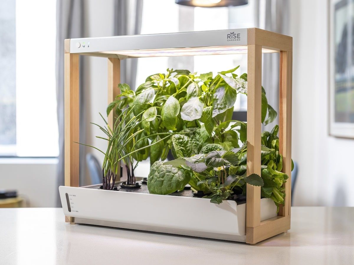 The Miracle-Gro Twelve Indoor Growing System is a sleek and modern hydroponic system designed to grow a variety of herbs, vegetables, and even flowers. This system can grow up to 12 plants at once and features a built-in LED grow light and Bluetooth connectivity.