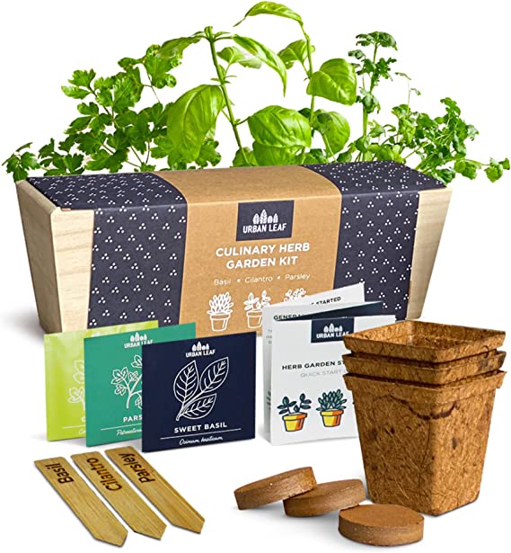 Indoor Herb Garden Starter Kit is a complete, organic indoor gardening kit designed to help you grow five popular herbs. The kit Organic seeds, as well as peat pots, soil discs, and plant markers.
